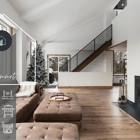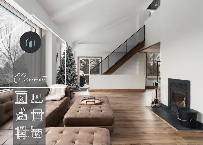 Villan O Sommet -Game Room-Spa-Sauna-Lake Access med 2 sovrum, som ligger cirka 25 minuters gångavstånd från Lac Jaune, har bubbelpool och bastu.